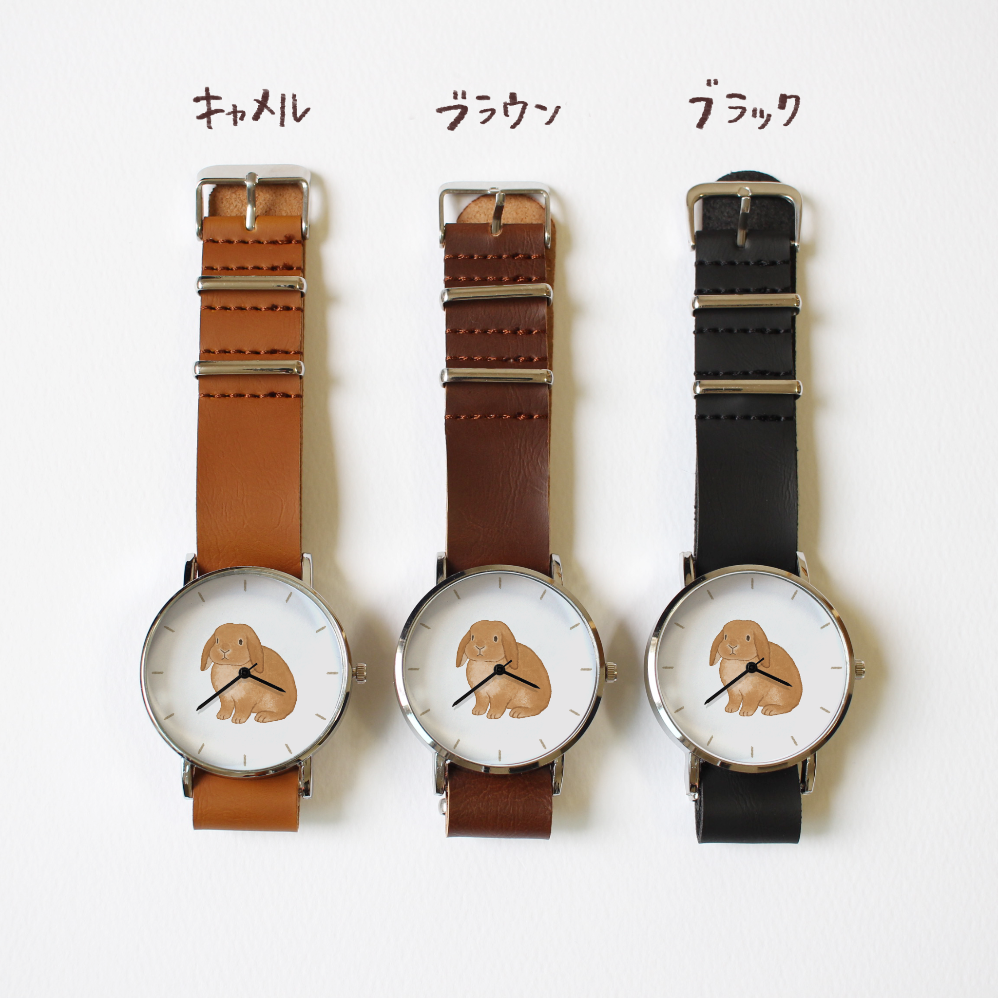 うさぎ(ブラウン)垂れ耳の腕時計です。